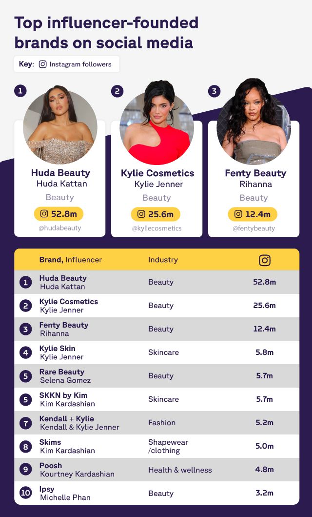Top influencer-founded brands on social media