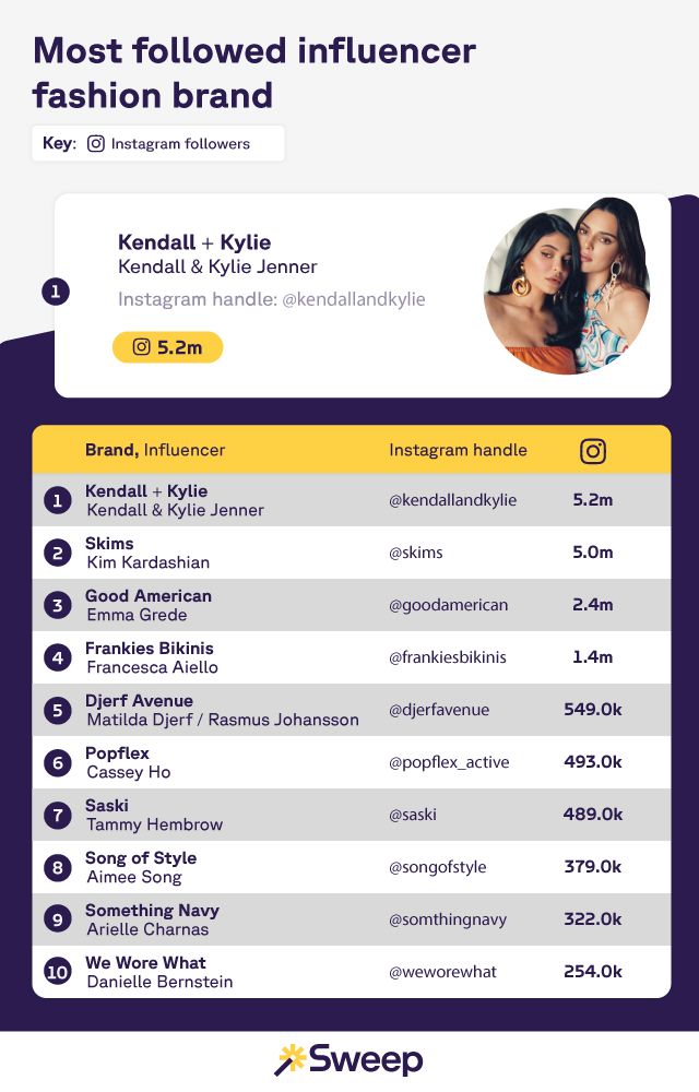 Most followed influencer fashion brand