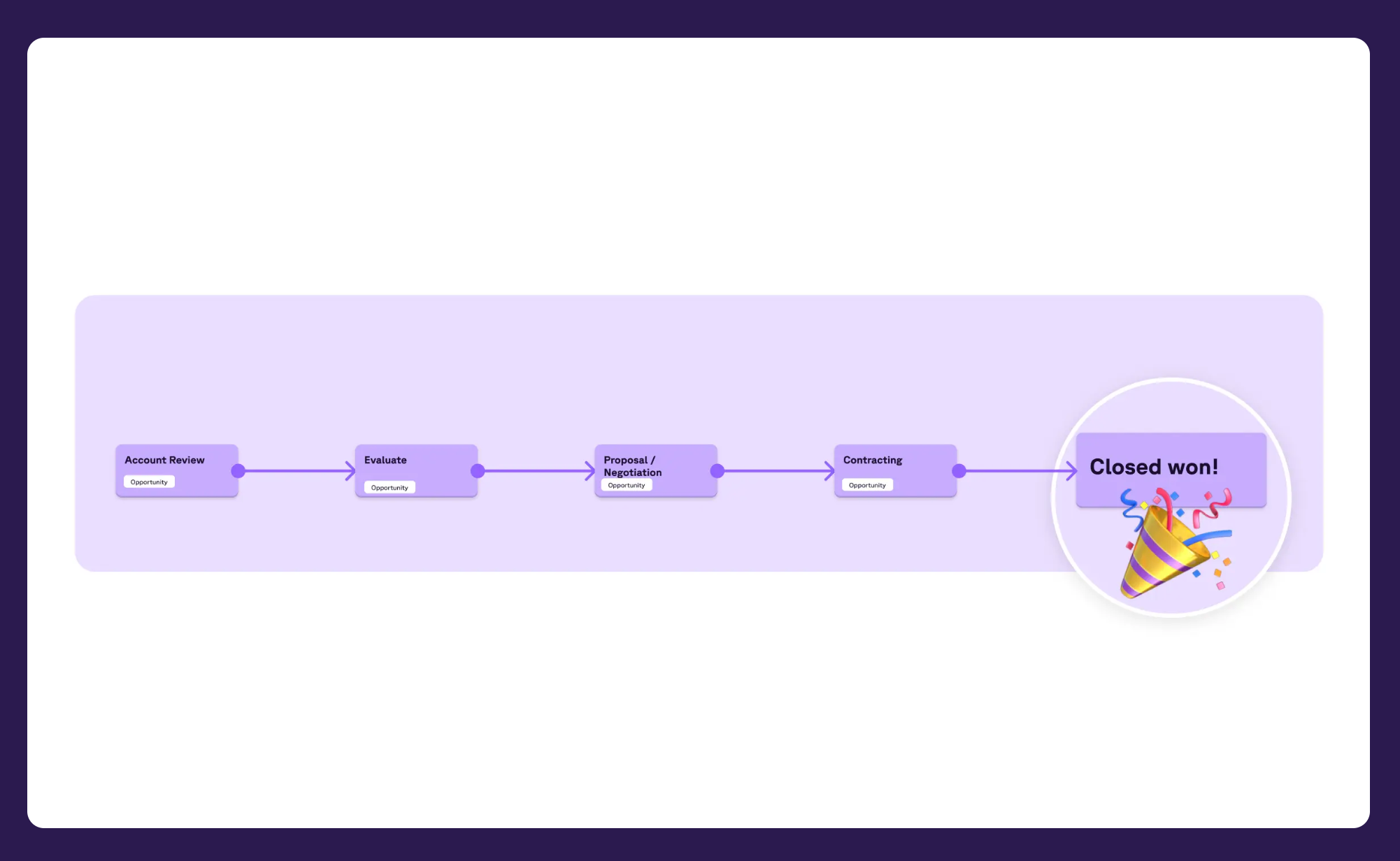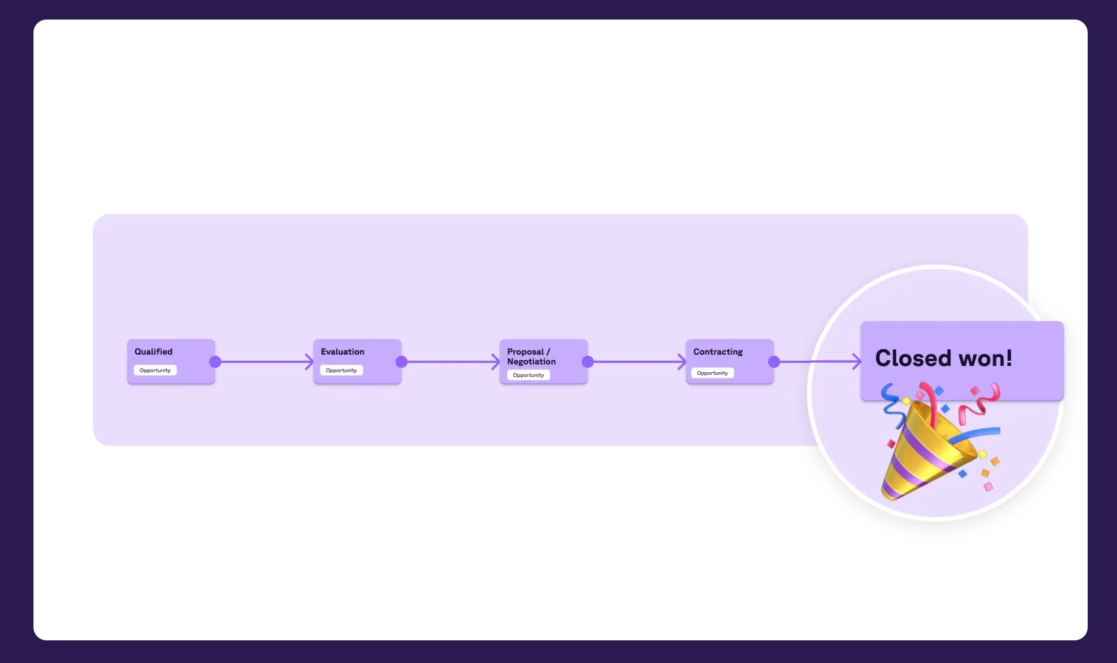 This template consists of different stages that represent the milestones required to move a lead or opportunity forward. Right now, the New Business Funnel template includes the following stages: Qualification, Evaluation, Proposal/Negotiation, Contracting, and Closed/Won. However, keep in mind that you can always customize these stages so that they fit your company’s specific needs.