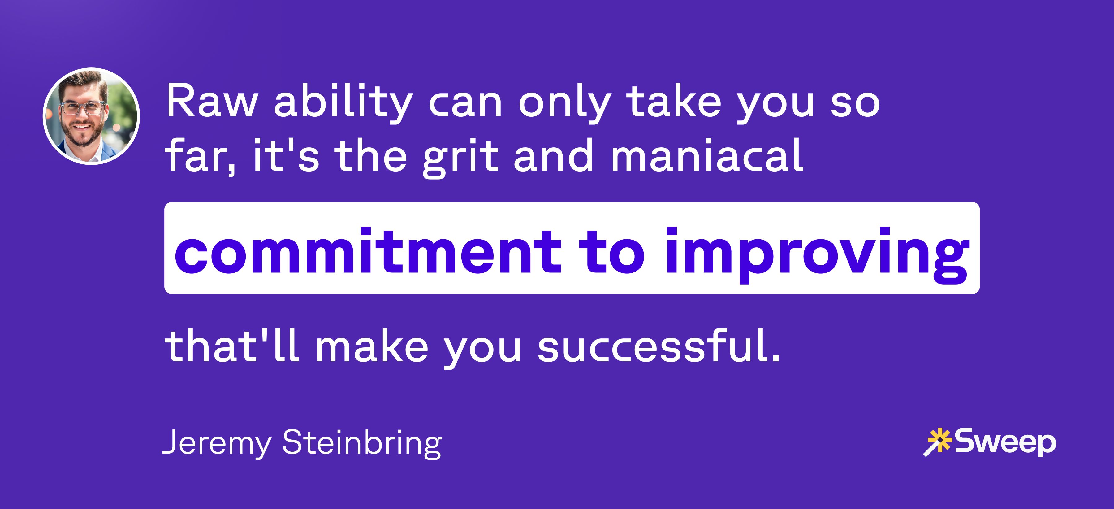 Jeremy: You're only as good as your last performance - raw ability can only take you so far, it's the grit and maniacal commitment to improving that'll make you successful.